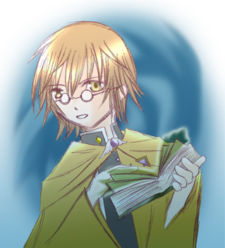 さなえさんの『優しい守護者』の魔導師ヒロさんの設定がすっごくツボでテンションが上がったので勝手に描いてみました。大きな魔導書大好き!軍師大好き!眼鏡も大好き!