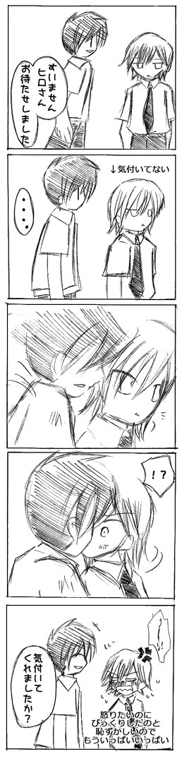このジャンルで絵を描くつもりはなかったのに…(男キャラを描くのが苦手と豪語しているので)。文だと上手く表現できなさそうなので即興5コマ漫画にしちゃいました。